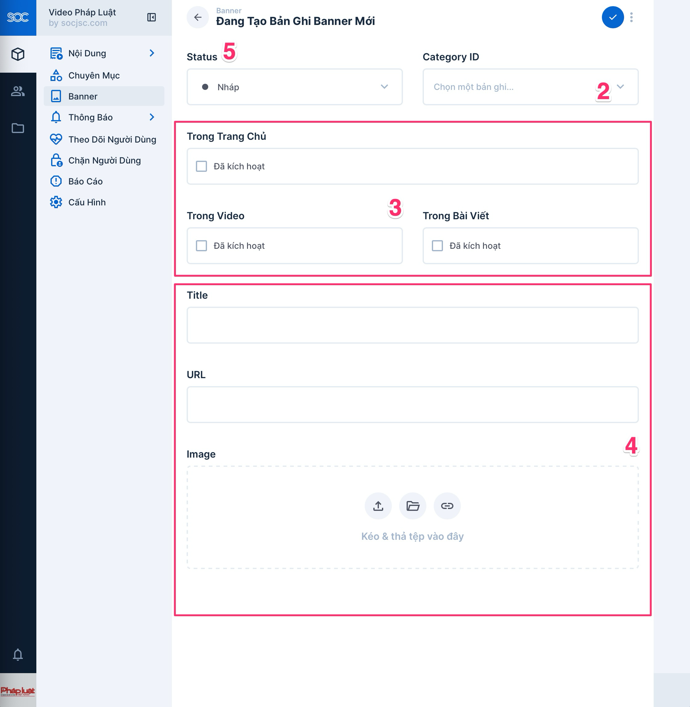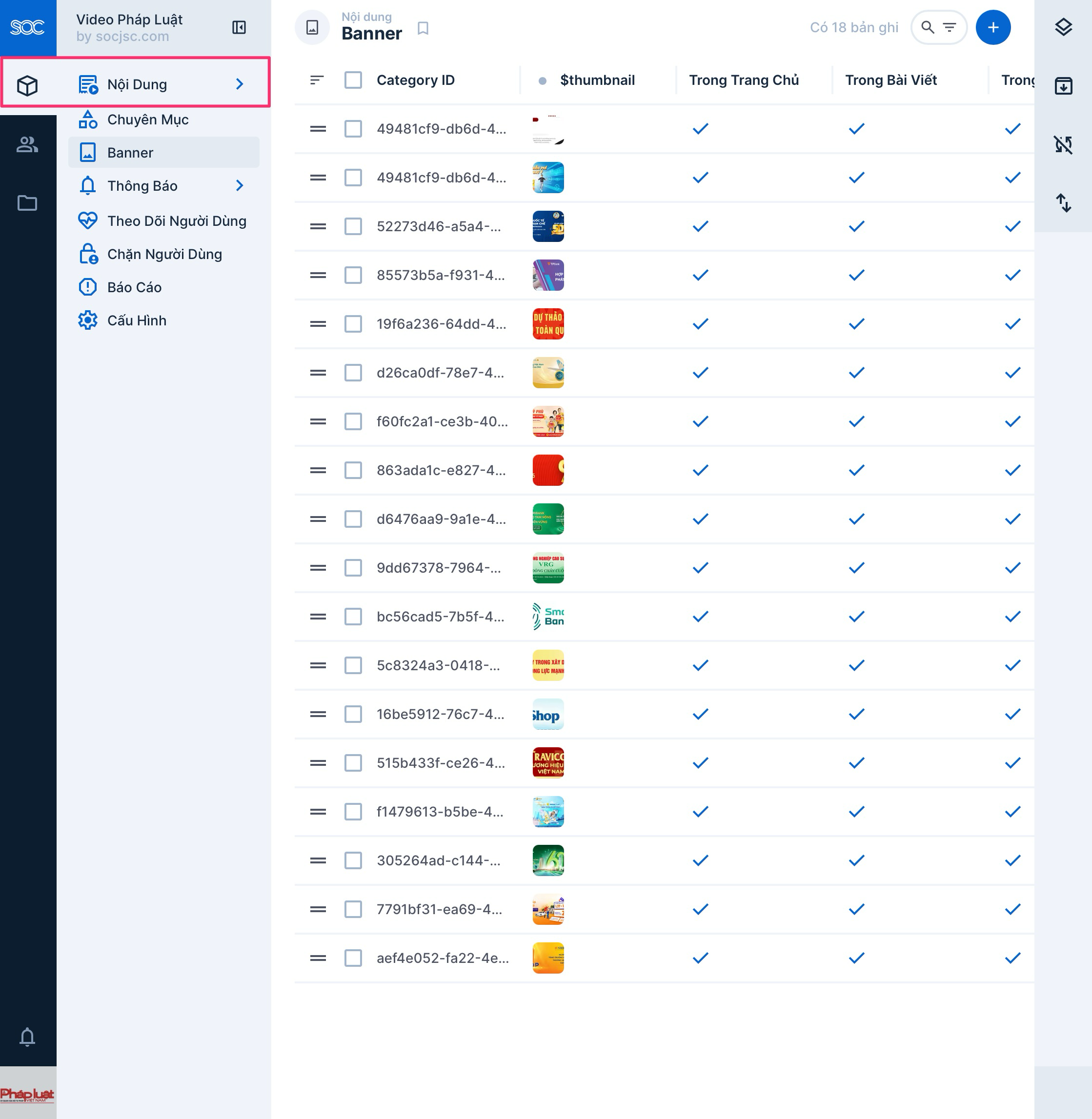 In addition to banners, the admin can also manage, add, or adjust information for categories in a similar way in the "Categories" section in the "Content" menu.