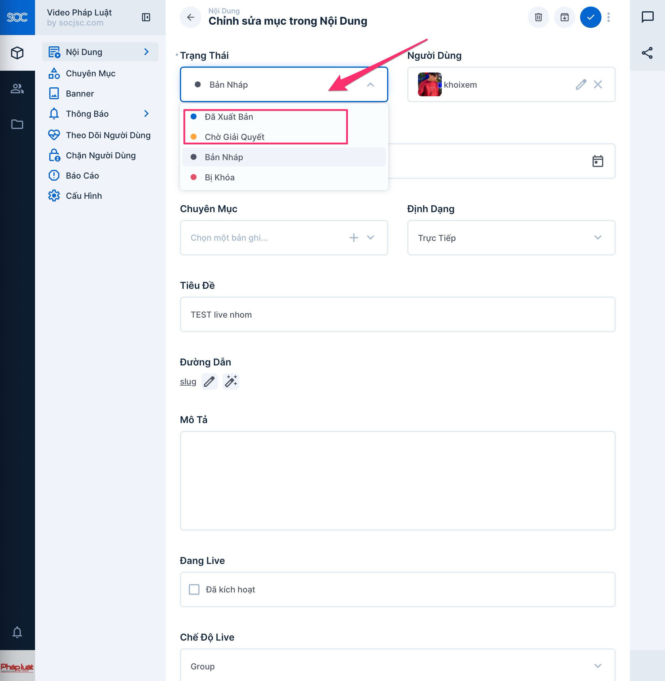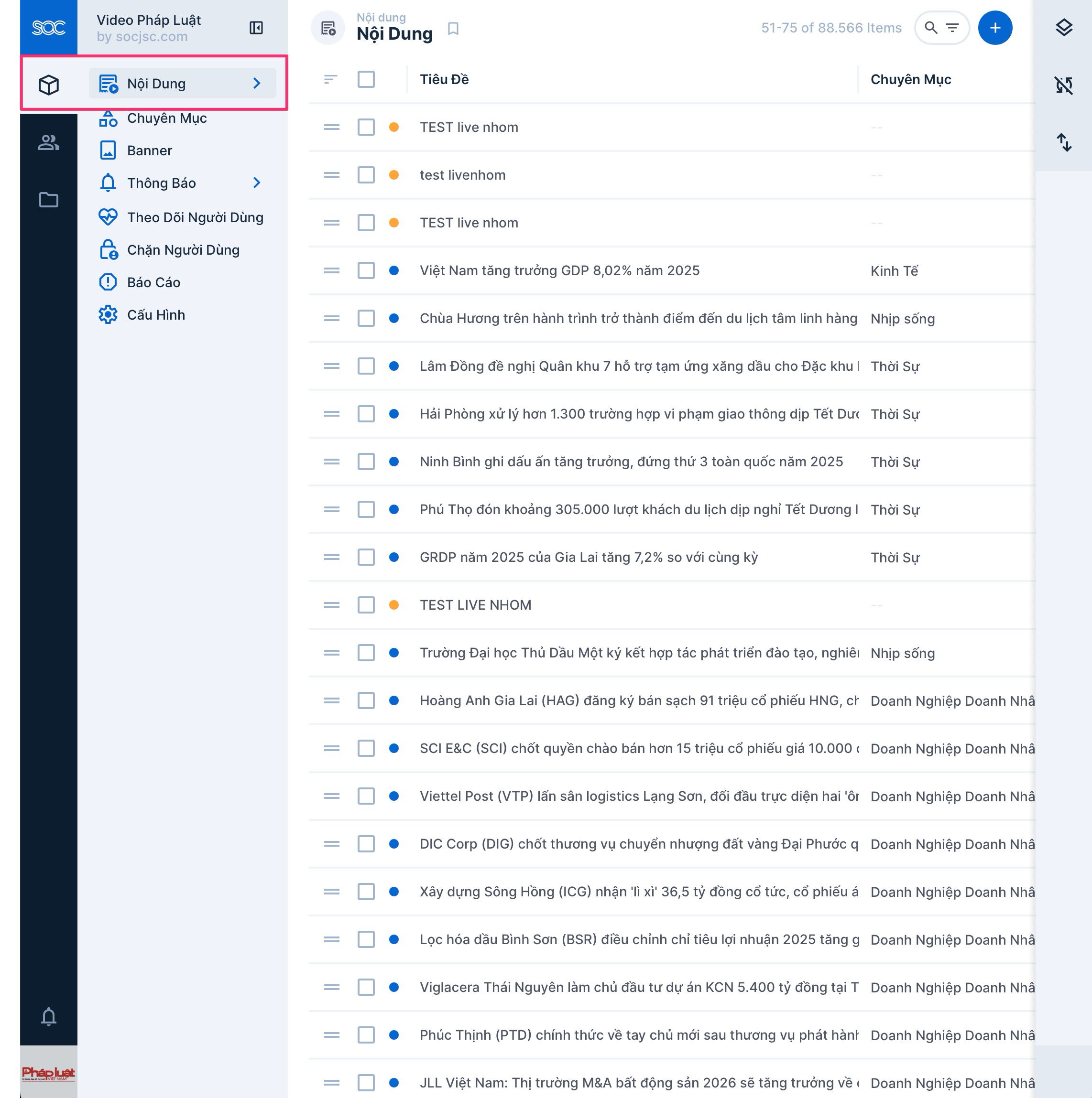 When there is a new post, the admin needs to access the "Content" section, where the list of all posts in the statuses of "Draft", "Pending Review", "Published", and "Locked" will be displayed.